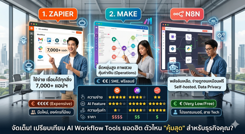 จัดเต็ม! เปรียบเทียบ AI Workflow Tools ยอดฮิต ตัวไหน “คุ้มสุด” สำหรับธุรกิจคุณ